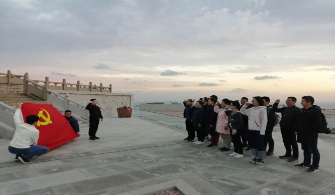 红霞辉映中,大家集体肃立,高举右拳,重温入党誓词,表达在新时代为建设国家、推进人民教育事业奋斗终身的决心。