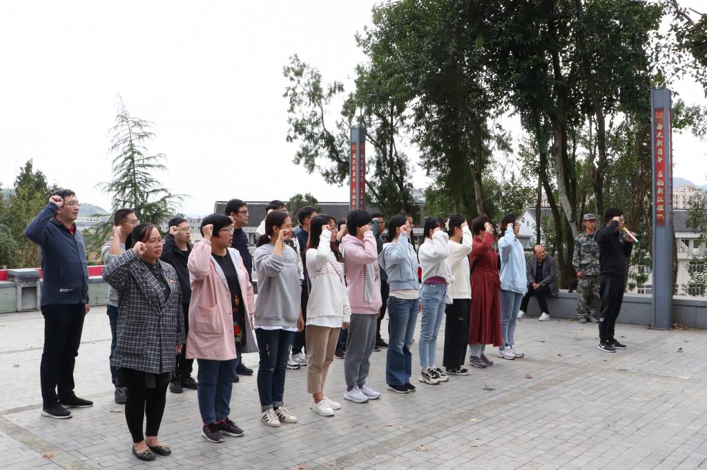 下午,在中国工农红军第十三军二师革命烈士陵园,大家于纪念碑前缅怀烈士遗志,接受红色教育并进行入党宣誓。随后,在解说员的带领下,参观了红二师纪念馆展厅。通过参观学习,师生党员们了解了坞根革命根据地红军先烈的英雄事迹,学习了先辈们崇高神圣、矢志不移的革命信仰和吃苦耐劳、艰朴勇毅的赤子之心,精神上受到了极大的鼓舞。参观学习后,在柯联民老师的主持下,党员们一同学习了十九届六中全会精神,进一步增强了大家的党性认识和政治觉悟。