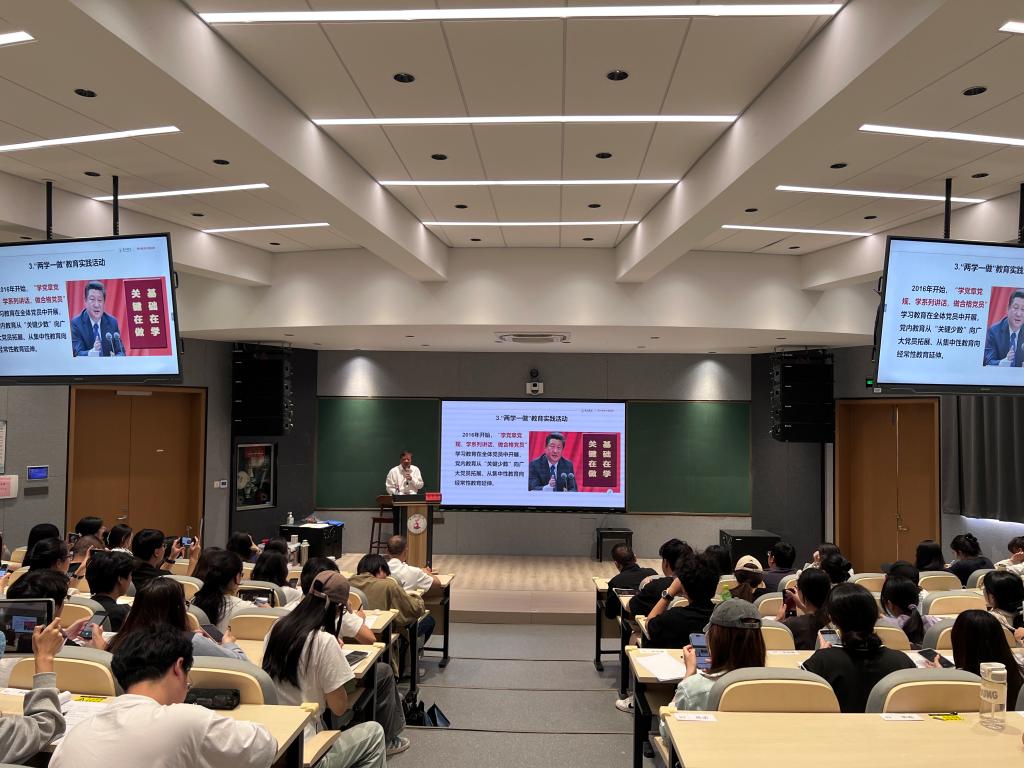 金先龙回顾党的十八大以来党内开展的集中教育活动,强调学习教育旨在引导党员牢记党的根本宗旨,保持与群众血肉联系。他深入解读了中央八项规定的出台背景、具体内容和重要意义,系统阐述了党的十八大以来党中央以作风建设为突破口推进全面从严治党的历史性成就。金先龙强调,当前党的建设形势依然严峻复杂,八项规定是党中央加强作风建设的重要举措,是党员干部必须严格遵守的政治纪律和政治规矩。他通过高校领域典型警示案例,要求青年党员干部从理论学习、纪律执行、监督落实多维度贯彻规定精神,警惕形式主义,将纪律要求内化为行动自觉,培养廉洁自律意识。