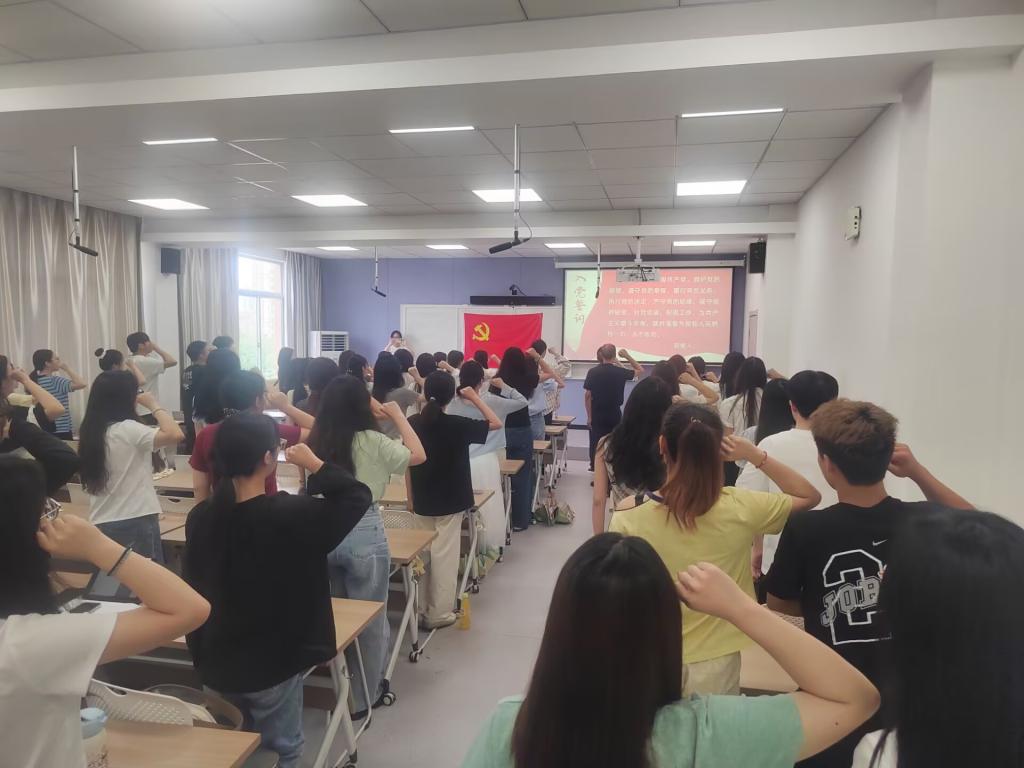 重温一次入党誓词,永葆入党初心。6月10日上午,毕业生党员在院党委书记陈灵强带领下,面向鲜红党旗庄严举起右拳,重温入党誓词。“我志愿加入中国共产党……”铿锵誓言回响会场,字字千钧激荡初心。仪式现场庄严肃穆,毕业生党员神情坚毅,以铮铮誓言回溯入党承诺,强化党员身份认同与责任担当。在离校前这一特殊时刻重温誓词,既是对理想信念的再淬炼,更是奔赴新征程的再动员。党员们纷纷表示,将永葆政治本色,把誓言融入未来岗位实践,为实现中华民族伟大复兴贡献青春力量。