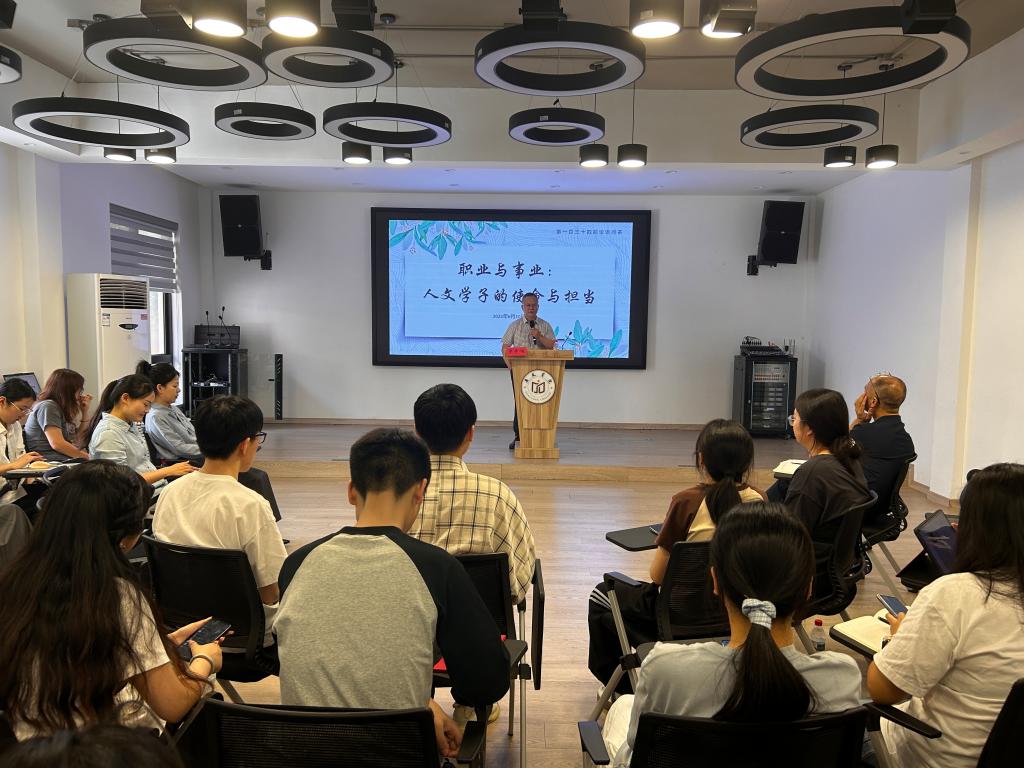 参加一次论语问茶,畅谈使命责任。6月10日下午,人文学院“论语问茶”第134期活动在广文书院多功能厅举行。院长罗争鸣以“职业与事业:人文学子的使命与担当”为主题,与在场师生交流人文学科的职业发展。罗争鸣指出,职业是“occupation”式的岗位任务,而事业是“vocation”般的终身追求,强调大学绝非职业培训场,人文教育需培养影响一生的“灵魂工程师”。针对AIGC技术引发的“文科无用论”,罗争鸣认为,AI能生成画作却不懂“蒙娜丽莎”背后的人文价值,人类独有的精神体验是AI无法替代的“生命算法”。作为即将毕业的人文学子,要以圣贤经典为基,带着老师们的谆谆教诲,让人文素养成为安身立命的秘密武器。