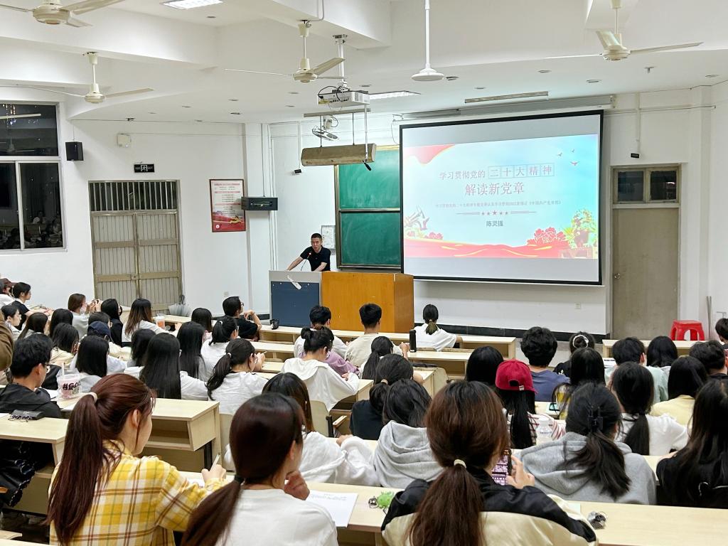 开学典礼后,陈灵强以《解读新党章》为题为学员授党课。党课从五四时期青年的个性解放到当今社会青年的个性解放切入,引入主题解读新党章。陈灵强结合福建舰海试、嫦娥六号背面登陆月球和华为pura70发布等国内社会时事、国际形势对党章进行讲述,引人深省。党课强调,要自觉学习党章、遵守党章、贯彻党章、维护党章,进一步凝聚党心民心、在全面建设社会主义现代化国家的新征程上夺取新胜利。