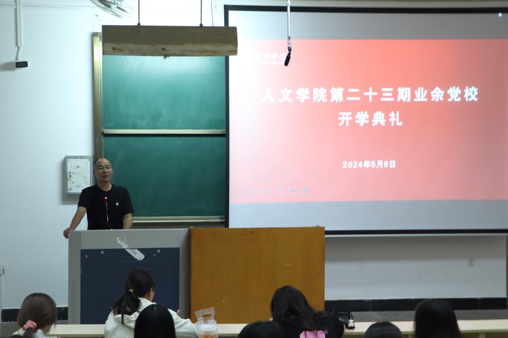 5月9日,人文学院第二十三期业余党校开学典礼在A1举行。学院党委书记陈灵强出席,128名入党积极分子和发展对象参加典礼,学院党委副书记林军辉主持。