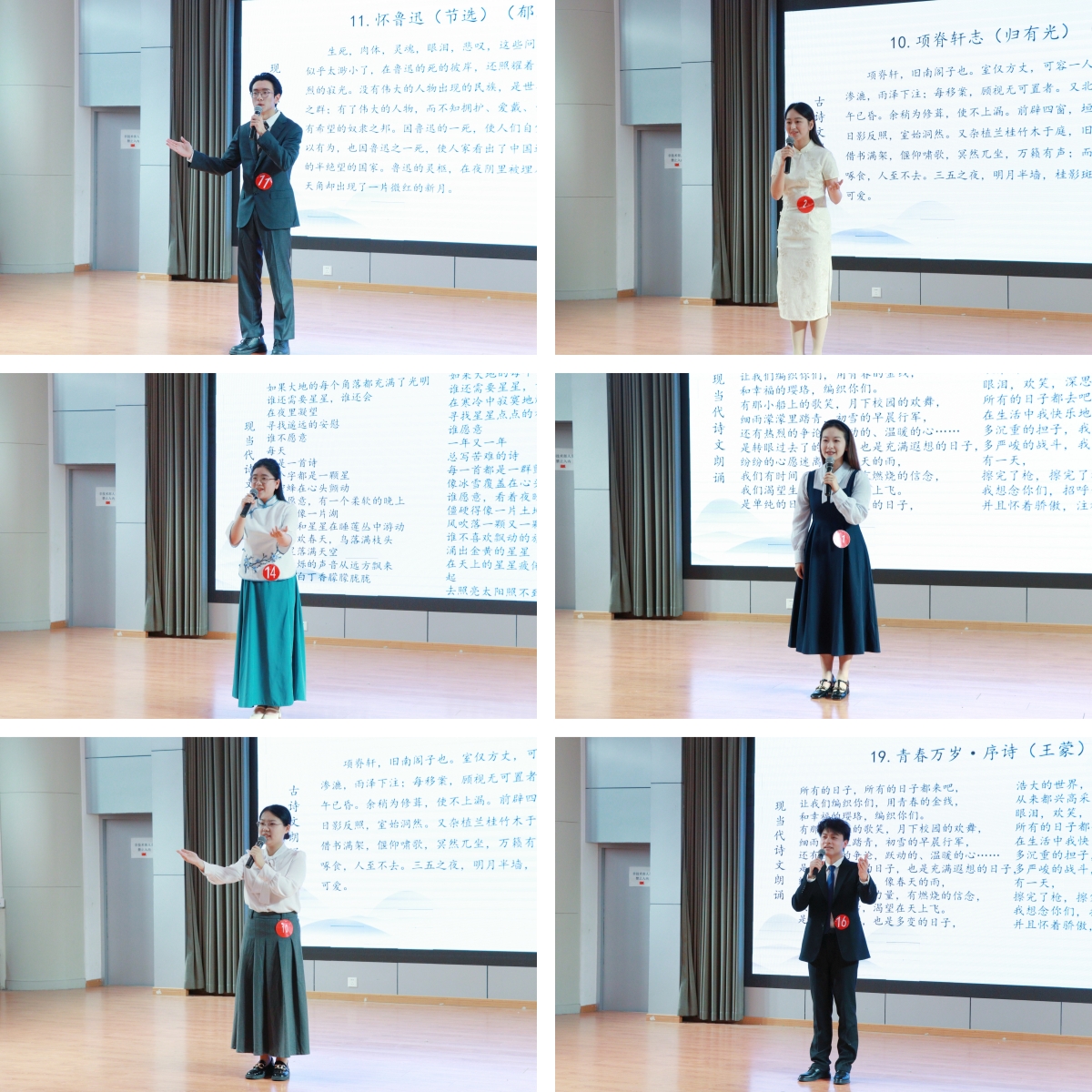 本次竞赛分为“诗文朗诵与讲解”和“备稿演讲”两个部分。来自全校各学院的选手从容登场,用灵魂触摸经典,用声音诵读经典。《项脊轩志》的怡然自得,《赠卫八处士》的无限感慨,《星星变奏曲》对理想的向往和追求,《青春万岁•序诗》对未来的憧憬与期盼,激发了全场观众强烈的情感共鸣。而在备稿演讲环节,选手们以自身经历与生活见闻为切入点,引经据典,阐述了当代大学生对于“奋斗”“朋友”“老师”“婚恋”“智能技术”“流失的文物”“长处与短处”等诸多话题的独特看法,引发了观众阵阵热烈的掌声。
