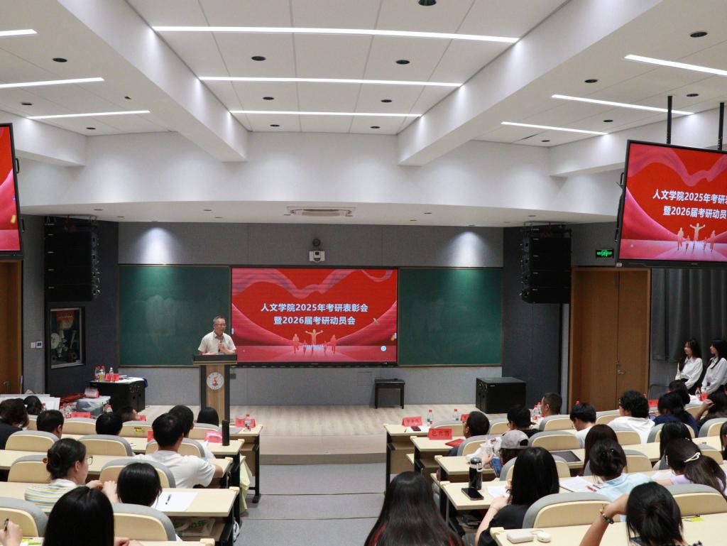 “优秀考研学子”代表洪玉婷总结了她的三点考研经验:一是考研并非一时,别高估自己的努力,也别低估自己的坚持;二是要学会调节情绪;三是身体和成绩一样重要;“优秀考研学子”代表方彬祝愿2025届考研上岸者保持初心、在热爱的领域发光发热,祝愿2026届考研者锚定梦想、永不言弃,定能终得所愿。“优秀指导老师”代表潘润表示,不管何种选择都是人生的重要时刻,他鼓励考研上岸的同学们在今后读研时光中积极学习研究方法、取得学术成就。2026届考研学生代表赵静娴在动员讲话中,号召考研学子把计划落到笔头,把决心化为行动。