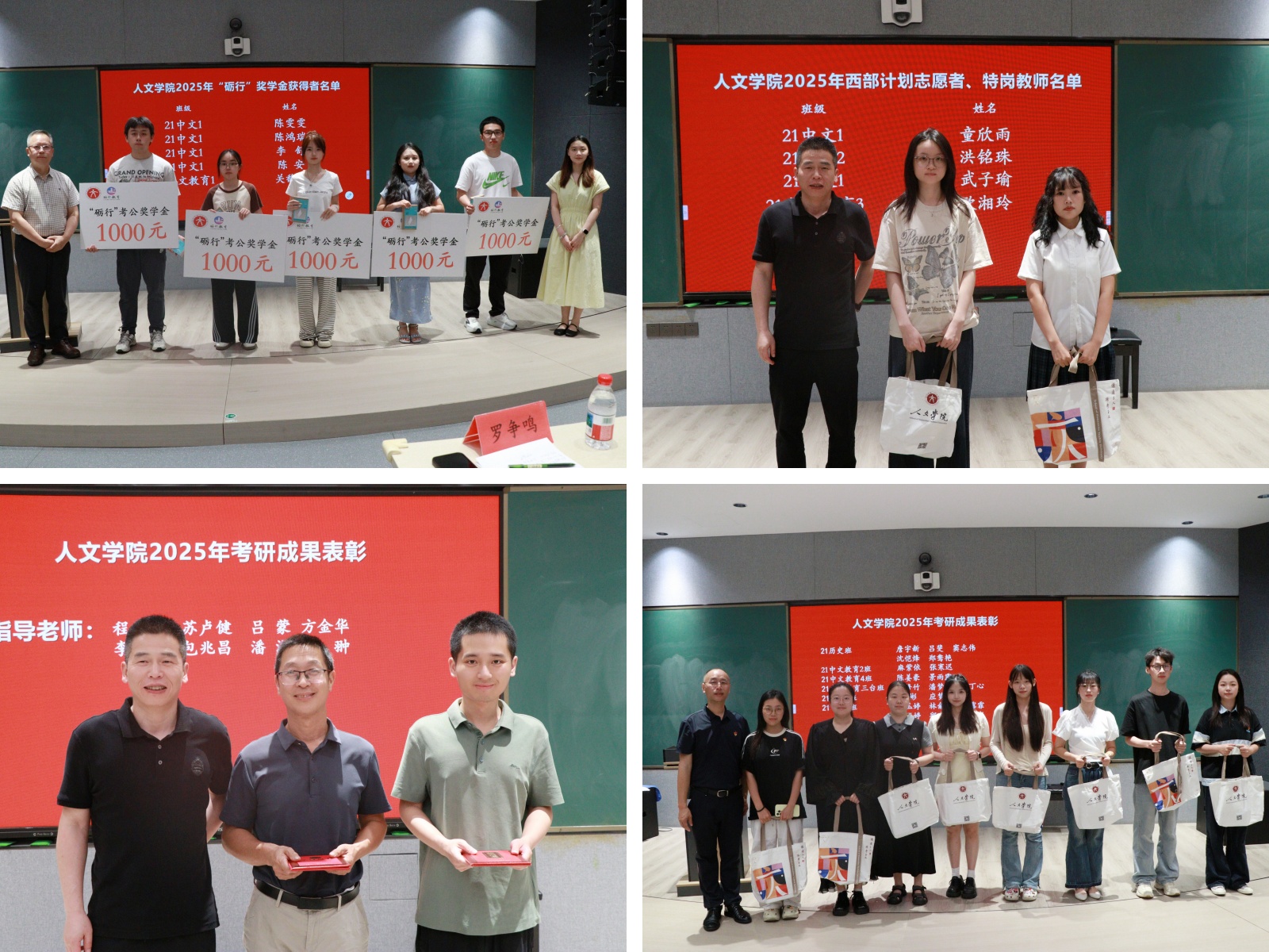 紧接着,娄欣星宣读了学院2025年考研“优秀指导老师”“优秀考研学子”名单,陈灵强、林军辉为他们颁奖。