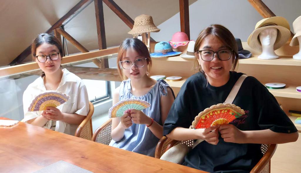 实践队成员草编扇子成果展示