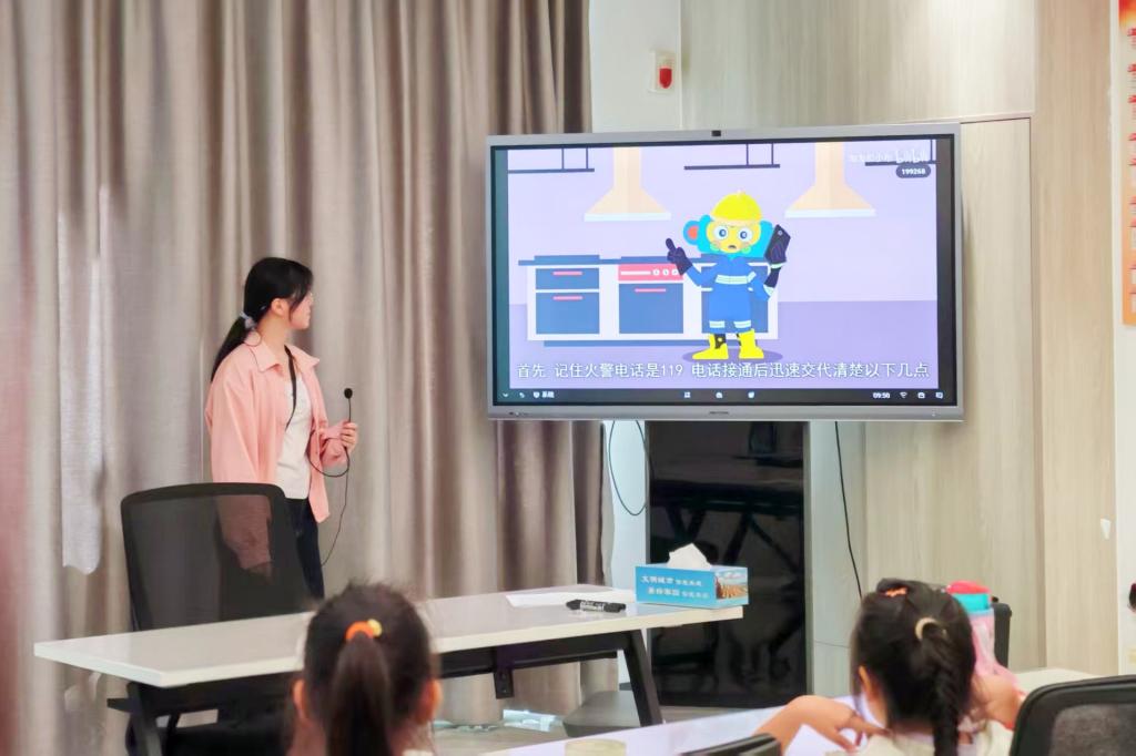 消防安全,关乎生命。上午时段,队员们组织开展了"消防安全教育"主题课堂活动。通过播放科普视频、开展火警电话模拟拨打演练等教学形式,结合问答互动环节,实践队成员系统讲解了火灾预防要点与应急逃生技能,将“火灾无小事,逃生要冷静”的理念深植童心。