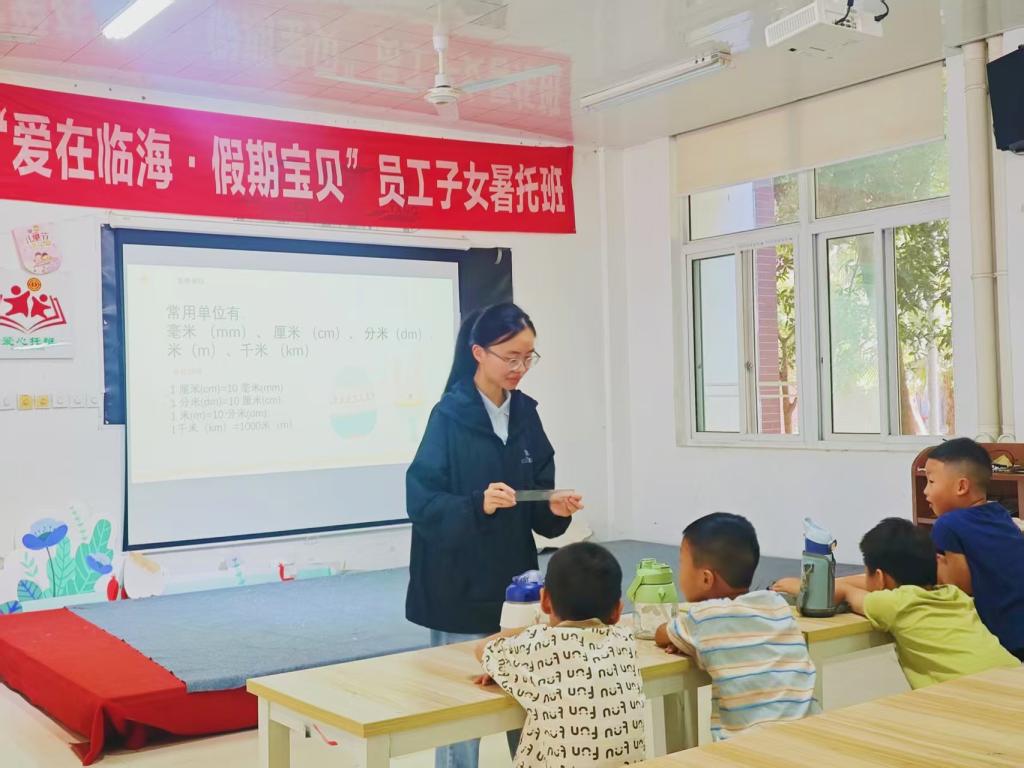 实践队成员教孩子们认识计量单位