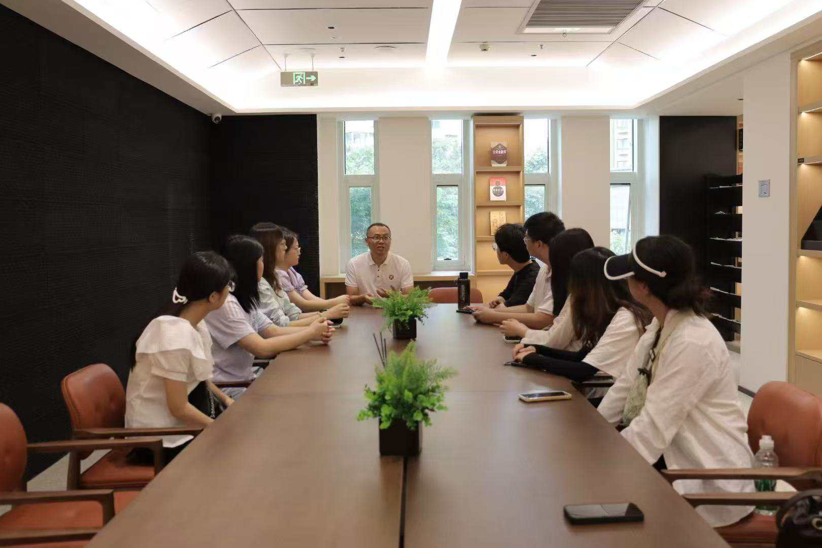 实践队先行考察了和合书城。走进书城,便能感觉到书城特有的静谧感,而冉冉书香和柔和的灯光提供了舒适的阅读环境,推开和合书城的大门,同学们瞬间被“和合之源、书香新城”的氛围所包裹。在和合书房里,指导老师郝金广为实践队同学们揭秘了和合书城之名的由来,强调了书城对传播读书活动和推广和合文化宣传的重要作用,表明了台州市政府深耕本土文化、擦亮和合文化名片的决心。