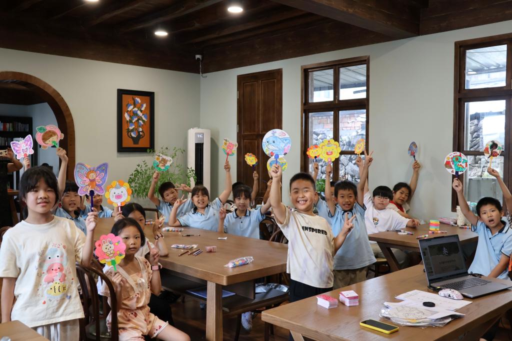 当欢声笑语在义城书房此起彼伏,这场别具一格的“穿越时空清凉之旅”圆满落下帷幕。书房负责人郑红介绍,活动充分发挥台州学院资源下沉乡村的优势,将古籍中的消暑智慧转化为生动的沉浸式体验;以“传统消暑”为独特切口,巧妙融合历史知识讲解、美学创意实践与趣味益智游戏,让文化传承如春风化雨般滋养童心。孩子们手中承载着古今智慧的创意作品,恰似颗颗文化种子,乘着山野清风播撒心田,未来必将破土抽芽,在新时代绽放出枝繁叶茂的文化新景。