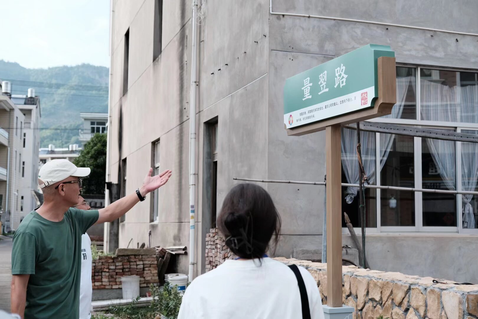 陈永君介绍芙蓉村的文化路牌