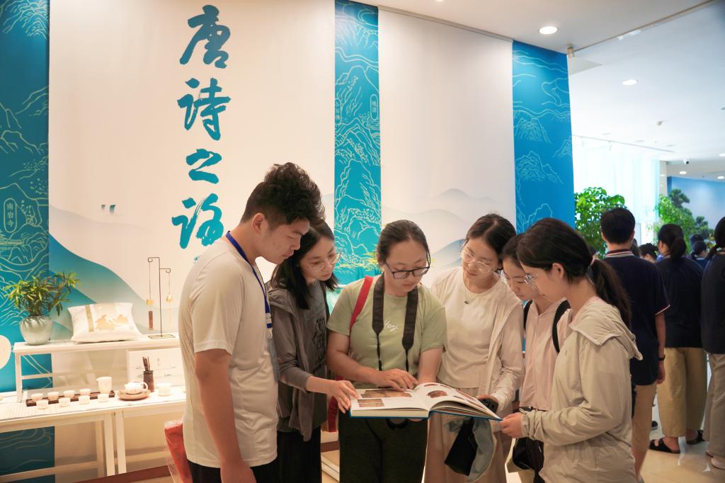 实践队的第一站是新昌博物馆。馆内的“唐诗之路”特展以“唐诗之路”产生的文化背景和历史发展脉络为主线,生动展现了“浙东唐诗之路”的绮丽浪漫,以及新昌在这条诗路中的重要地位。成员们穿梭于各个展区,沉浸在不同维度的唐朝气象之中:“大唐飞歌”展区将恢宏的盛唐气象深深植入人心;“诗行浙东”借助全息投影和互动诗词问答屏等新颖形式,让古老的唐诗“活”了起来;“梦回天姥”展区则引领队员们真切体会到了诗仙李白对越地山水的无限钟情。