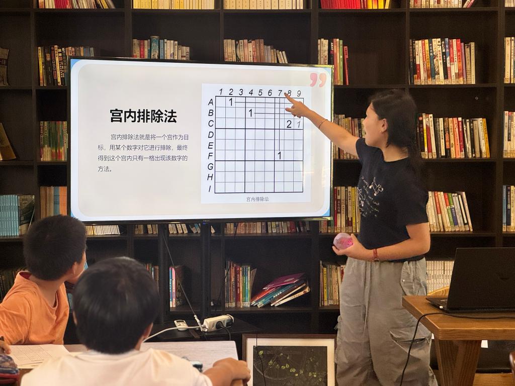 随后的数独课,旨在激发孩子们的逻辑思维。队员们向孩子们介绍:“数学的魅力不仅在于公式与定理,更在于它能启发思维、锻炼大脑。”队员们详细讲解数独游戏规则,以及如何运用逻辑推理逐步确定每一个数字。随着课堂推进,孩子们逐渐理解数独背后的数学原理,感受到思维的严密性与游戏的趣味性。队员们根据孩子们的能力,分发不同难度的题目,通过循序渐进的方式,帮助孩子们在解题过程中提升逻辑思维与专注力。每当完成一道难度较低的数独题,孩子们脸上都洋溢着兴奋的笑容,在不断尝试与解题中收获成就感。