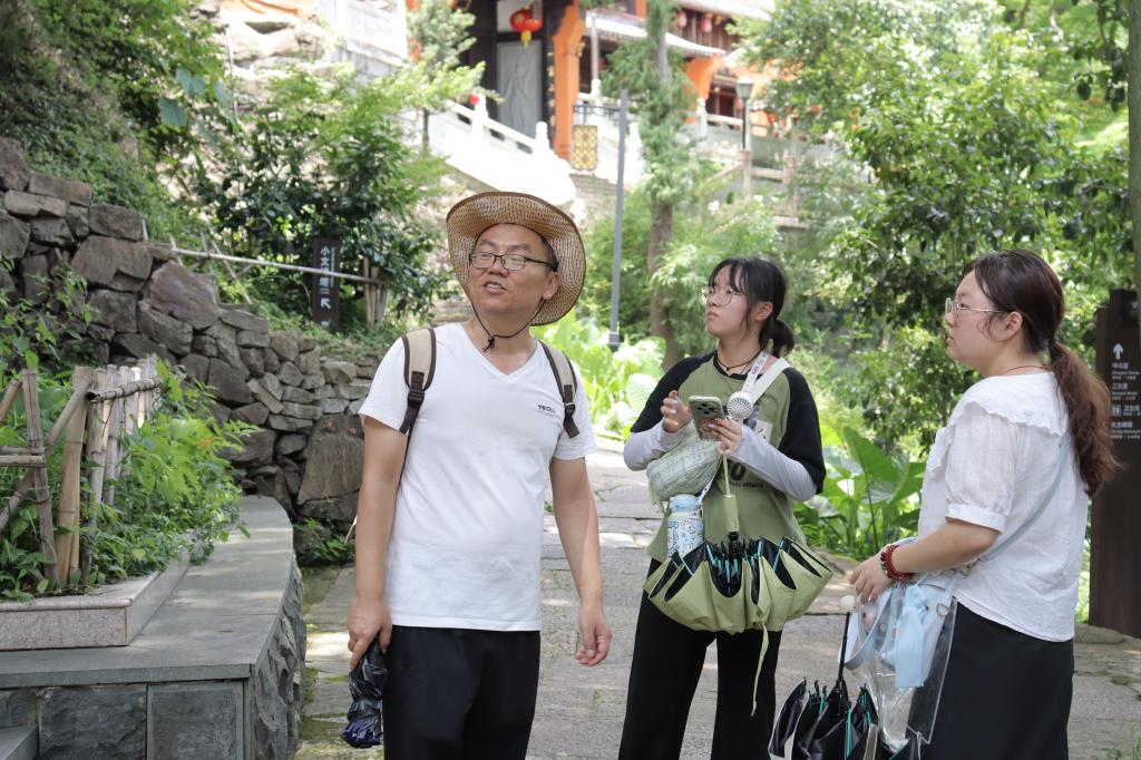 为了于儒释道中寻觅和合文化根脉,7月4日,实践队先后探访了临海文庙、龙兴寺和中斗宫。龙兴古刹香火不绝,府学孔庙弦歌未绝,圣地巾山三教共栖。通过指导老师郝金广的讲解,同学们认识到龙兴寺檐角挑起的不仅是千年香火,更是中日文化交织的一丝一缕。
