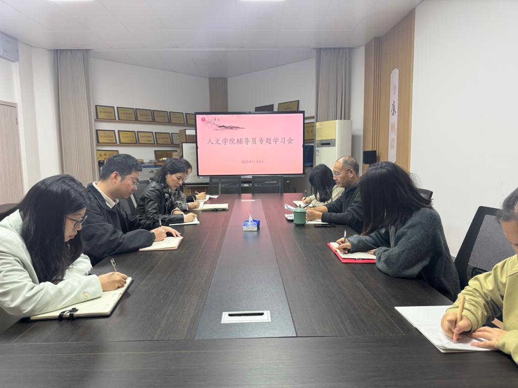 为进一步加强辅导员队伍建设,提升育人实效,11月5日上午,人文学院召开辅导员专题学习会,集中学习《朱坚书记在第十四期辅导员“学习日”活动上的动员讲话》精神。学院党委副书记林军辉出席会议,全体辅导员参加学习。