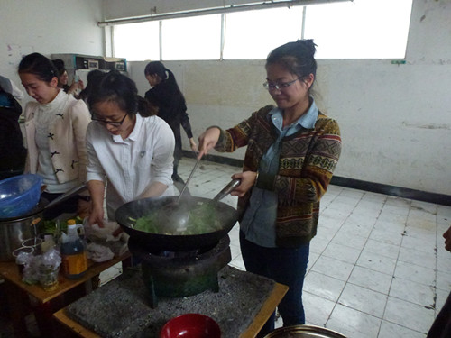 本次比赛采取自由组合的方式,每组两到四人,并在半小时内完成两道菜。开赛不久,选手们纷纷亮出自己的看家本领,切菜、掌勺,分工明确,各展所长。半小时后,伴着扑鼻的香气,一道道美味佳肴被端上餐桌。评委们逐一品尝,并在色、香、味三方面进行点评。