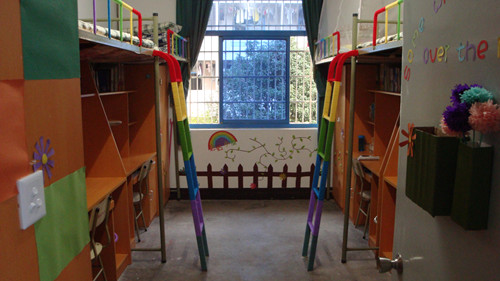 评审团从整洁、干净、创新、主题讲解四方面进行打分。各参赛寝室独具匠心,结合绘画、贴纸、书法、手工等多种形式,用灵巧的双手让寝室焕然一新,走进寝室,温馨感扑面而来。五彩斑斓的“彩虹之屋”,清新自然的“香尘小榭”,古色古香的“三思居”,柔美温婉的“心窝”……同学们不仅在整体上做到整洁美观,而且于细节处流露出温暖和人文情怀,比如照片墙、留言板、书法作品、手工艺品,给评审团留下了深刻印象。