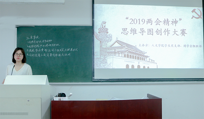 5月12日晚,由人文团学会组织部举办的“2019年全国两会精神内容学习”思维导图大赛于1310教室举行,人文学院学生第一、第二党支部书记高晗雯、姚卓琳出席,人文学院学生党员发展对象、入党积极分子参加了比赛。