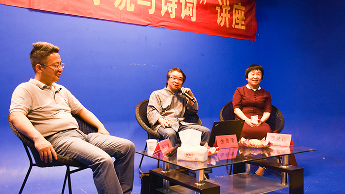 5月18日晚,鹿路文学社于马克思学院三楼举办“小说与诗词”讲座。台州市作家协会主席金岳清先生,临海博物馆馆长陈引奭受邀主讲,人文学院教授西慧玲主持,鹿路文学社全体同学参加。
