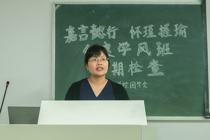 辅导员徐金苏老师指出建设优良学风班的重要性,此次汇报目的是为了各班间相互借鉴、交流经验。同时,肯定了各班昂扬的精神,肯定了各班充分而精心的展示,尤其肯定了17历史班和16中教4班等班级的精彩汇报和取得的成果。