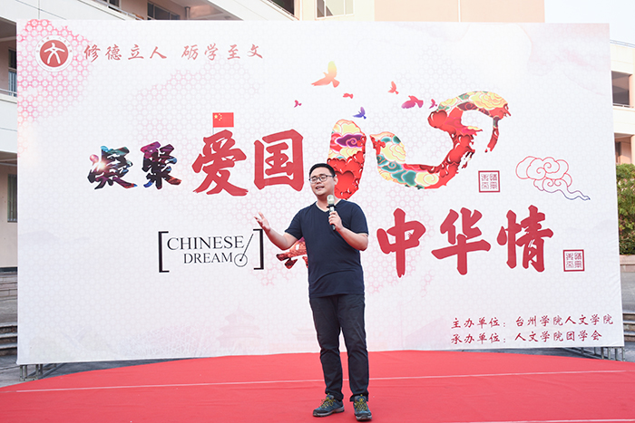 礼赞新中国,讴歌新时代。9月26日下午,人文学院于台州学院临海校区学生活动中心大圆盘举行“凝聚爱国心,共谱中华情”庆祝新中国成立70周年主题教育活动。人文学院院长李建军、党总支书记郑丽君、副院长高平、党总支副书记林霖、辅导员、部分教师代表和150多名学生参加了活动。