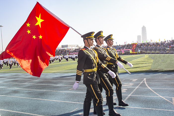 在慷慨激昂的国歌声中,开幕式正式开始。国歌奏毕,陈光亭校长在致辞中表达了对在场师生的亲切问候与感谢,他指出,体育是社会发展与人民进步的重要标志,是综合国力和社会文明程度的重要体现。他希望全体运动员能够以实际行动弘扬女排精神,全体裁判员与工作人员能公正执法,热心服务,确保运动会有序举行。紧接着,运动员代表与裁判代表分别进行宣誓。崔凤军书记宣布运动会正式开始,开幕式圆满结束。