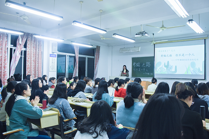 11月8日晚,由17中教5班举办的考编经验交流会在1209教室成功举行。本次活动特邀2017届汉语言文学(师范)专业毕业生、现临海市大洋小学在编教师尹晓慧作为嘉宾。人文学院辅导员林仙出席,我院17级汉语言文学(师范)专业部分同学到场聆听。