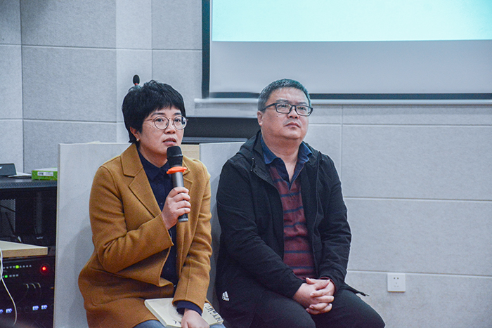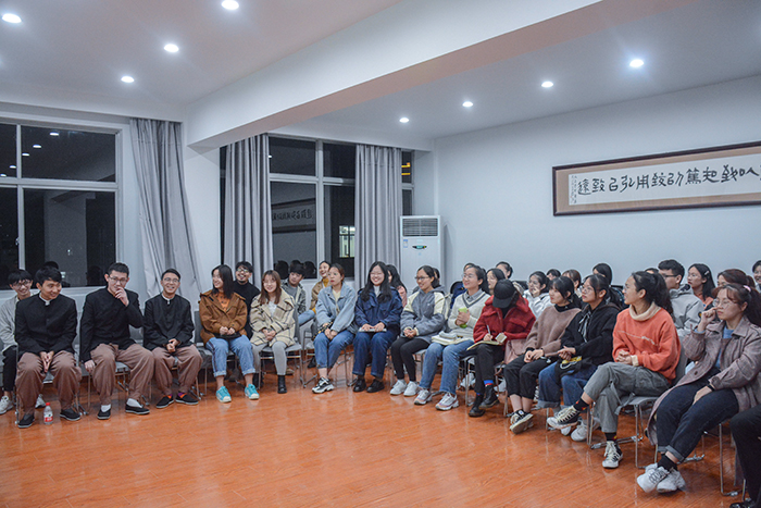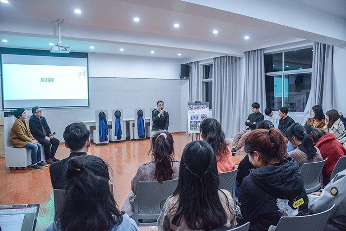 11月18日晚,GC剧社《老舍五则》剧谈会于一号楼四楼实训室举行。活动特邀人文学院金妮娅、王欣老师作为嘉宾。