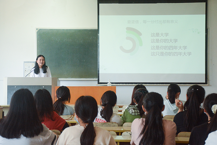 分享会根据不同专业在四个教室同时进行。18中教5班何蒋滢在与同学们分享了自己转专业后的学习生活后,提示同学们要学会充分利用时间,制定学期目标,有计划地学习,并表示释放压力也是学习生活中的重要部分;18中文1班吴若兰指出,同学们来到新的学院需要学会调节心态、适应环境,鼓励同学们追寻热爱的事物,在学习成绩优异的基础上提高竞赛成绩;18历史班张宏一建议同学们在完成专业课学习的同时要补充课外知识,向同学们介绍了部分学院活动,鼓励同学们积极参与,把握机会,拓展自身各方面的能力;18思政2班李雪雯则为同学们分析了思想政治教育专业的课程结构,提出要注重专业学习,利用课余时间提高自己的师范生技能。