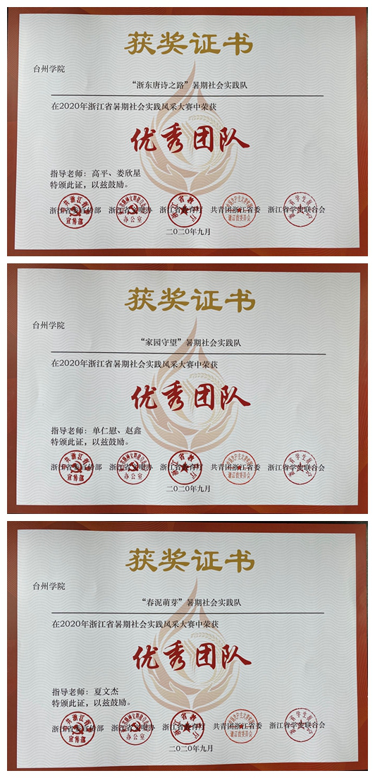 由浙江省省委宣传部、省文明办、省教育厅、共青团浙江省委、省学生联合会主办的2020年浙江省暑期社会实践风采大赛圆满落下帷幕,人文学院3支实践队获得省级“优秀团队”荣誉,再获佳绩!