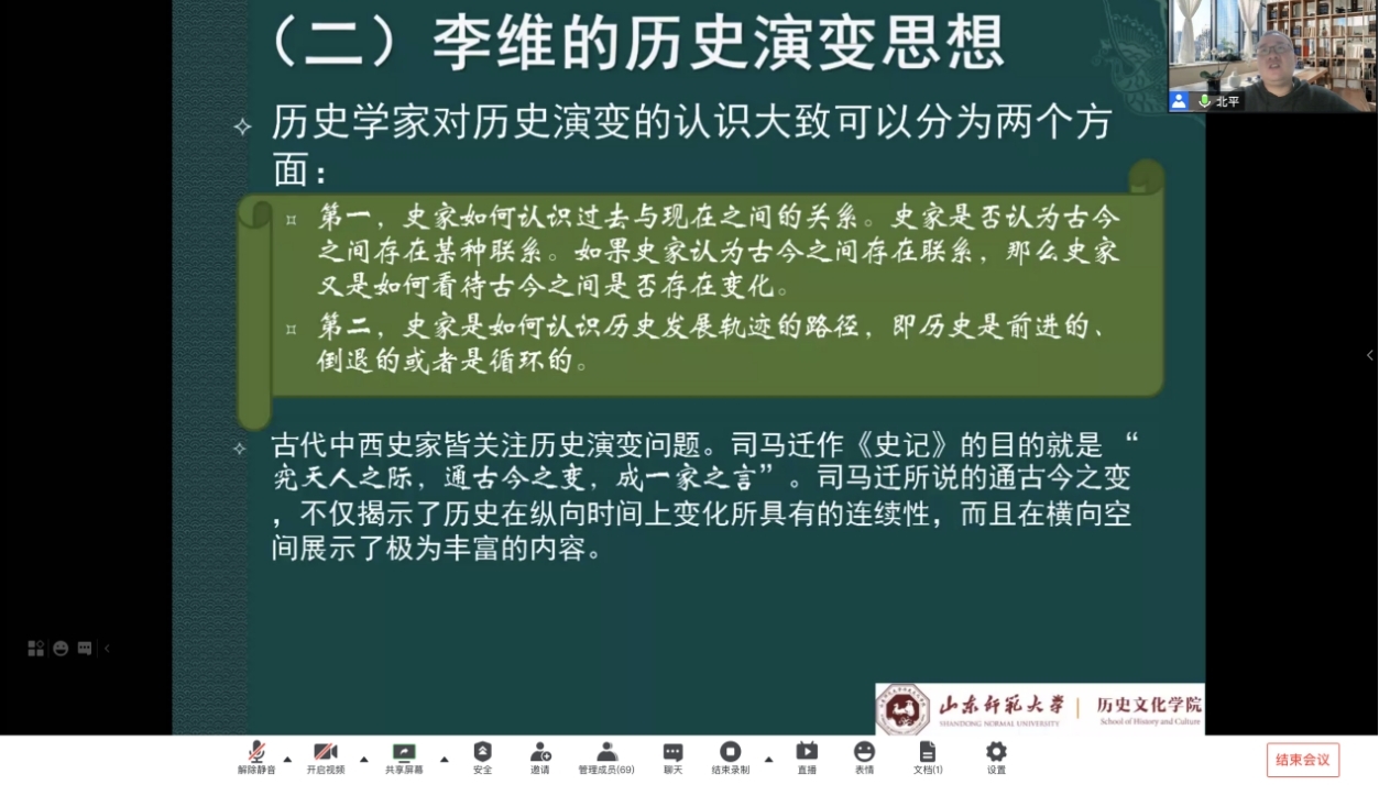 在讨论与提问环节,同学们围绕着中西史学比较等问题与赵老师进行了交流,赵老师对于这些提问一一给予了细致解答。最后,主持人程老师宣布本次讲座结束,整场讲座在一片浓郁的学术氛围中圆满落幕。