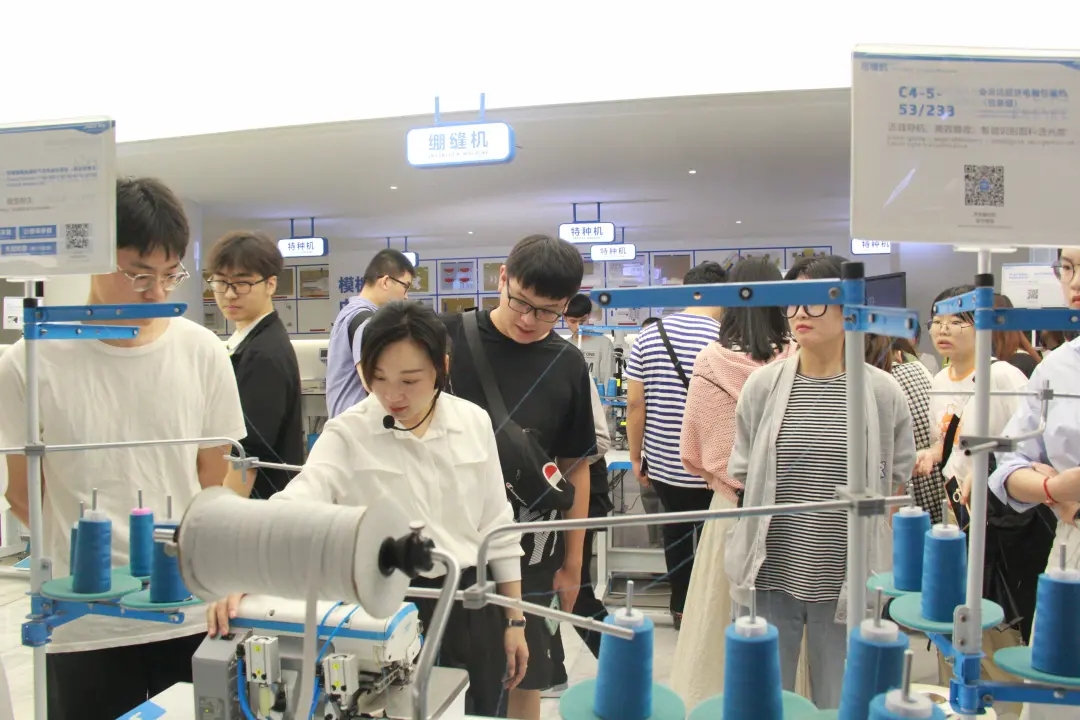 我院学生受到了企业的热烈欢迎,随后分成两组有序参观企业的文化展厅、缝纫机展厅以及生产车间。工作人员详细地介绍了企业的发展历程、缝纫机生产流程及车间管理模式等,学生们向工作人员积极提问。