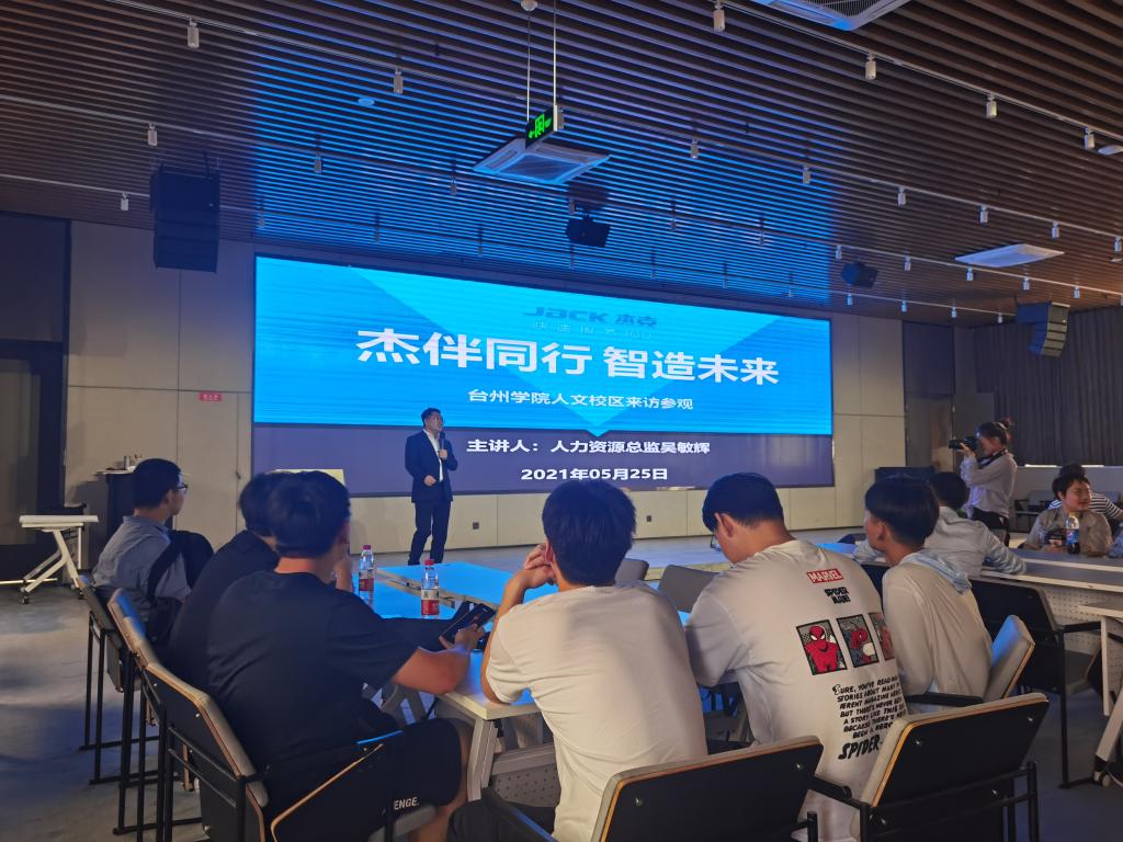 5月25日下午,在椒江区人社局人才市场科王仁华主任、校学生处程君岭老师、专任教师黄莉和辅导员张玉琢的带领下,19级汉语言文学专业和20汉语言文学专升本专业全体学生前往杰克缝纫机股份有限公司参观学习。