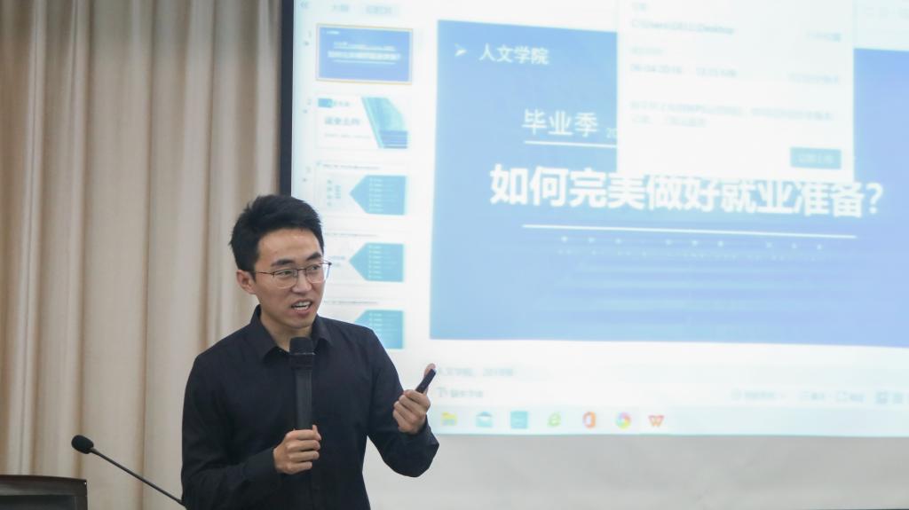 6月7日晚,“人文类专业就业路径选择与准备技巧” 讲座在图书馆六楼报告厅举行,特邀砺行公考申论、常识、面试金牌讲师,面试培训院院长祝文峰主讲,学院党总支副书记林仙、分团委书记夏文杰、辅导员赵远哲应邀参加,18级部分同学到场聆听。