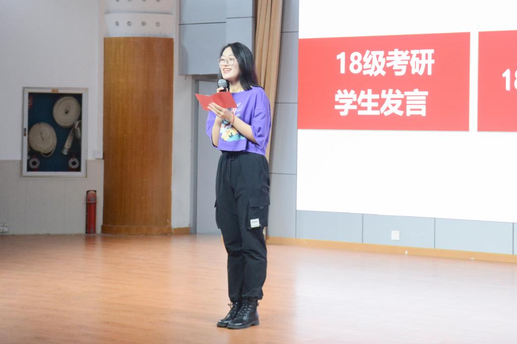 紧接着,考研指导教师代表作考研辅导交流发言。包兆昌老师指出,考研可以更大程度地提升自己的内在修养,他直言只有对知识极致渴望,才可以缓解考研之路的疲乏,学习贵在坚持与热爱。吕蒙老师表达了对各位同学的感谢与欣慰,并祝愿同学们可以有更美好的未来。18级学生代表作关于自己艰辛考研之路的发言。