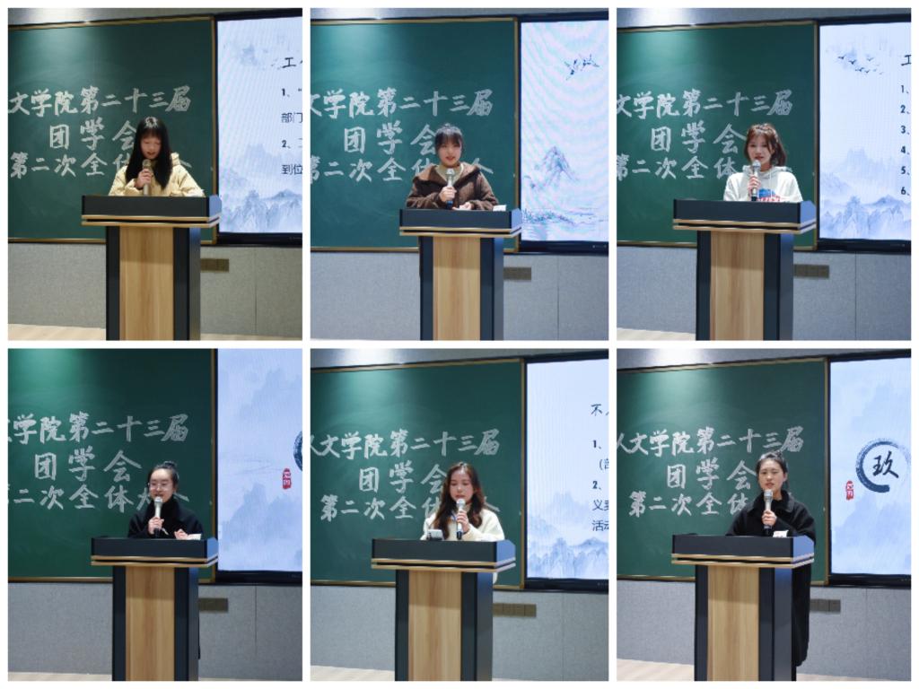 12月29日晚,人文学院第二十三届团学会第二次全体大会在A6教室召开,辅导员李彦铭出席,团学会全体成员参加,会议由人文学院学生会执行主席张九尹主持。本次大会有老师致辞、各部门工作汇报和主席团发言三个环节。