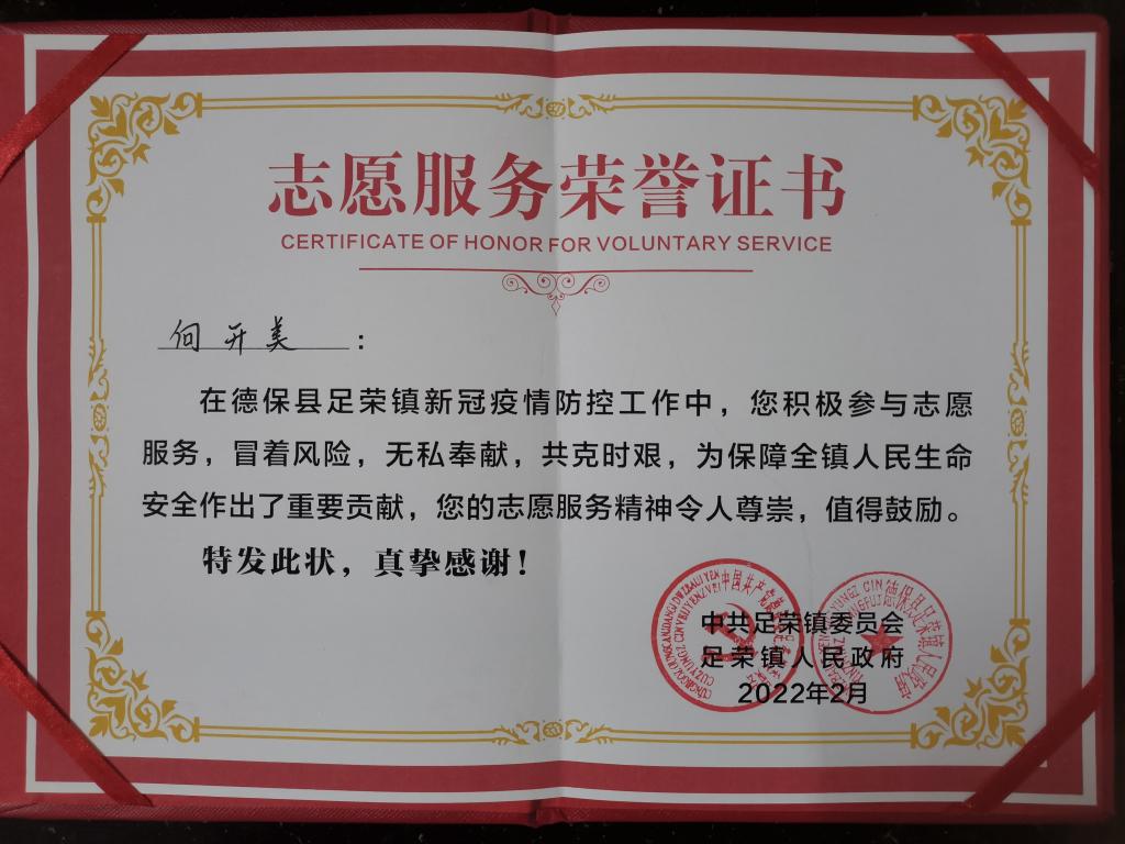 抗疫有我,青年先行。核酸检测志愿者的工作是机械且辛苦的,长时间的机械工作并未让她感到厌倦,身处抗疫前线的危险也并未使她退却,她凭借着坚韧的毅力,挑起了对抗疫情的重担,为德保县的抗疫工作贡献了自己的力量。在那20天里,从凌晨五点到晚上十一点,向开美自始至终认真地负责采样试管的封箱,保障核酸样本采集工作高效无误地进行,得到了领导和同事们的一致好评。2月27日,德保县全域管控解除,转为常态化疫情防控。谈及这段工作经历,她感叹道“我不能忘记很多善良勇敢坚强的人。”在抗疫路上,无数志愿者肩扛责任,砥砺前行,为抗疫工作贡献出自己的点点星光。