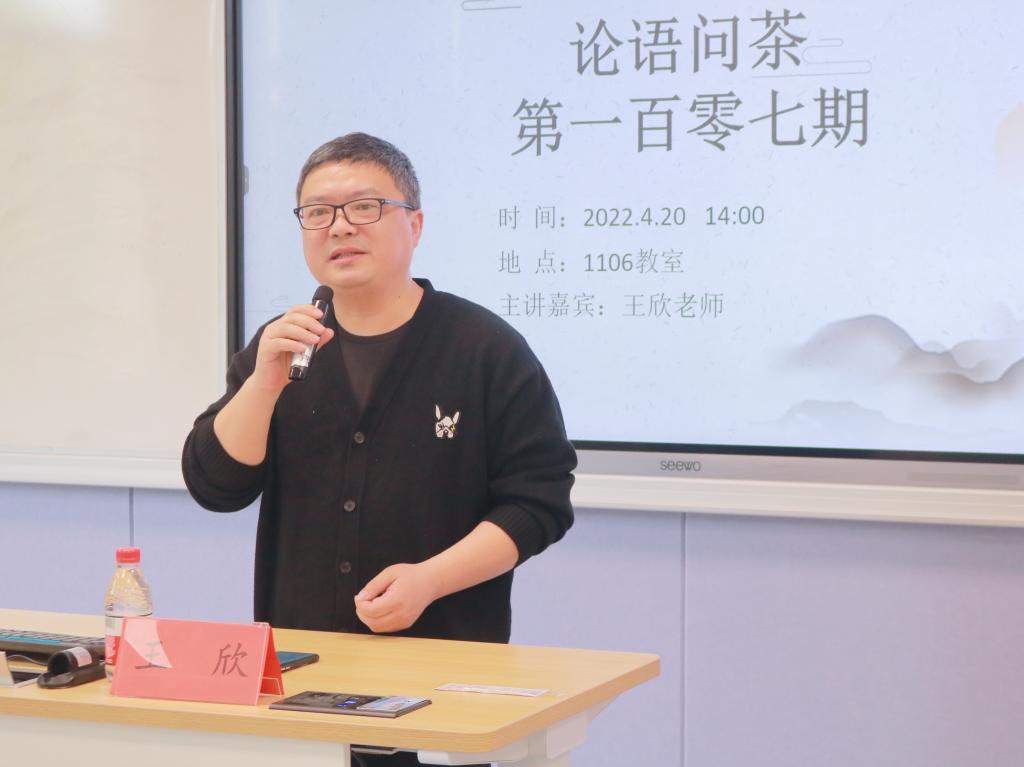4月20日下午,第107期论语问茶活动在1106教室举行,人文学院王欣老师以阅读为主题与大家展开交流,人文学院学生代表到场聆听。