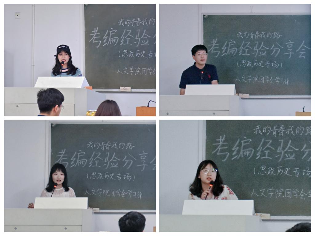 为帮助同学们明确考编目标,解答考编困惑,6月14日晚,人文学院在1307教室举行教师考编经验交流会,特邀18级思政、历史专业优秀考编学子黄檬檬、陈哲帅、范雨婷、林佳梦做经验交流分享。