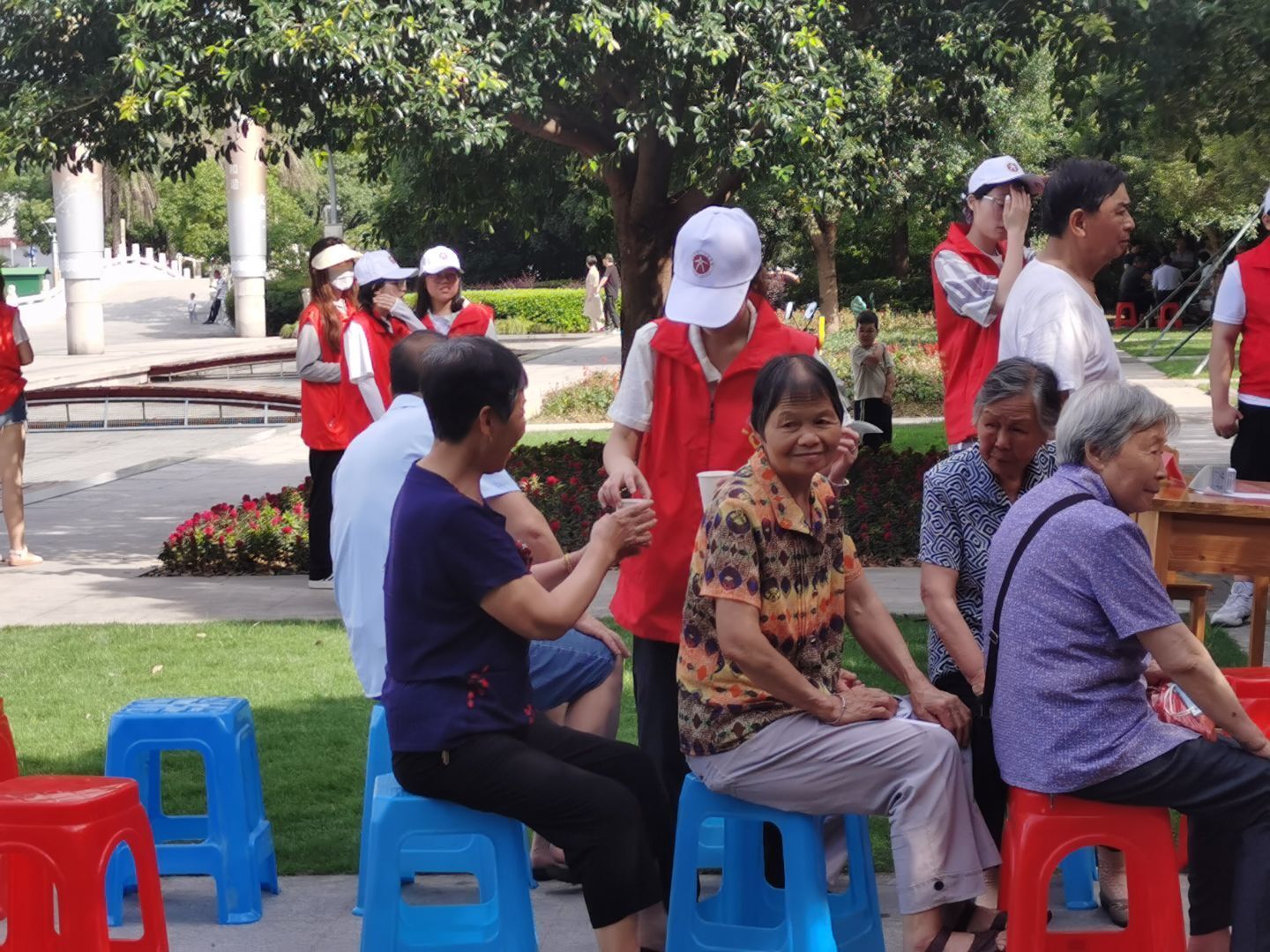 在33摄氏度的高温下,法律新风进万家实践队队员为在等待中的老人们赠送爱心凉茶。与此同时,法律新风进万家实践队还对市政广场进行了美化,旨在为老人们的日常锻炼与活动提供一个更为舒适整洁的场所。