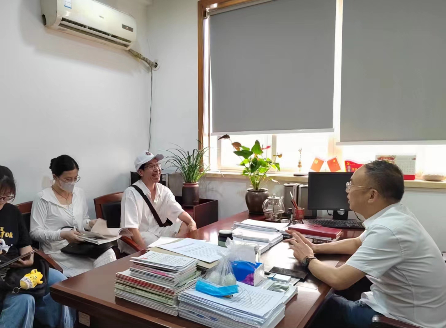 随后在单仁慰和王妮老师的带领下,实践队队员来到了临海农业农村局,单老师向李建强副局长表达了台州学院目前对涌泉蜜桔进行农业文化遗产申报的重视程度,并介绍了台州学院正在筹备的“乡村营造专业”的课程设置相关情况,提出了在乡村电影院和文旅策划等方面的构想。李局长对此表示全力支持。此外,李局长强调乡村发展的关键点是文化挖掘,通过将文化作为乡村发展的着力点,促进乡村从物质富裕向精神富裕的提升和蜕变,并在此基础上提出了集中力量打造品牌形象以及环境整治等多项建设性的意见。