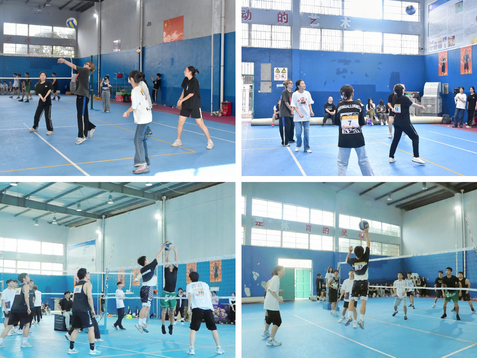 随着人文女排比赛的火热进行,人文男排比赛也如火如荼地进行着。人文男排配合默契,利用多次传球的方式干扰对方判断,步步紧逼拉开比分,成功抢占先机。与此同时,观众们热血沸腾,掌声如雷。人文男排大胆尝试更换队员,却被对手趁机压倒,比分僵持不下。休息过后,人文男排重整队伍努力追赶比分,最终险胜马克思主义学院。人文男排在一次小失误后重回优势地位,最终连胜夺冠。