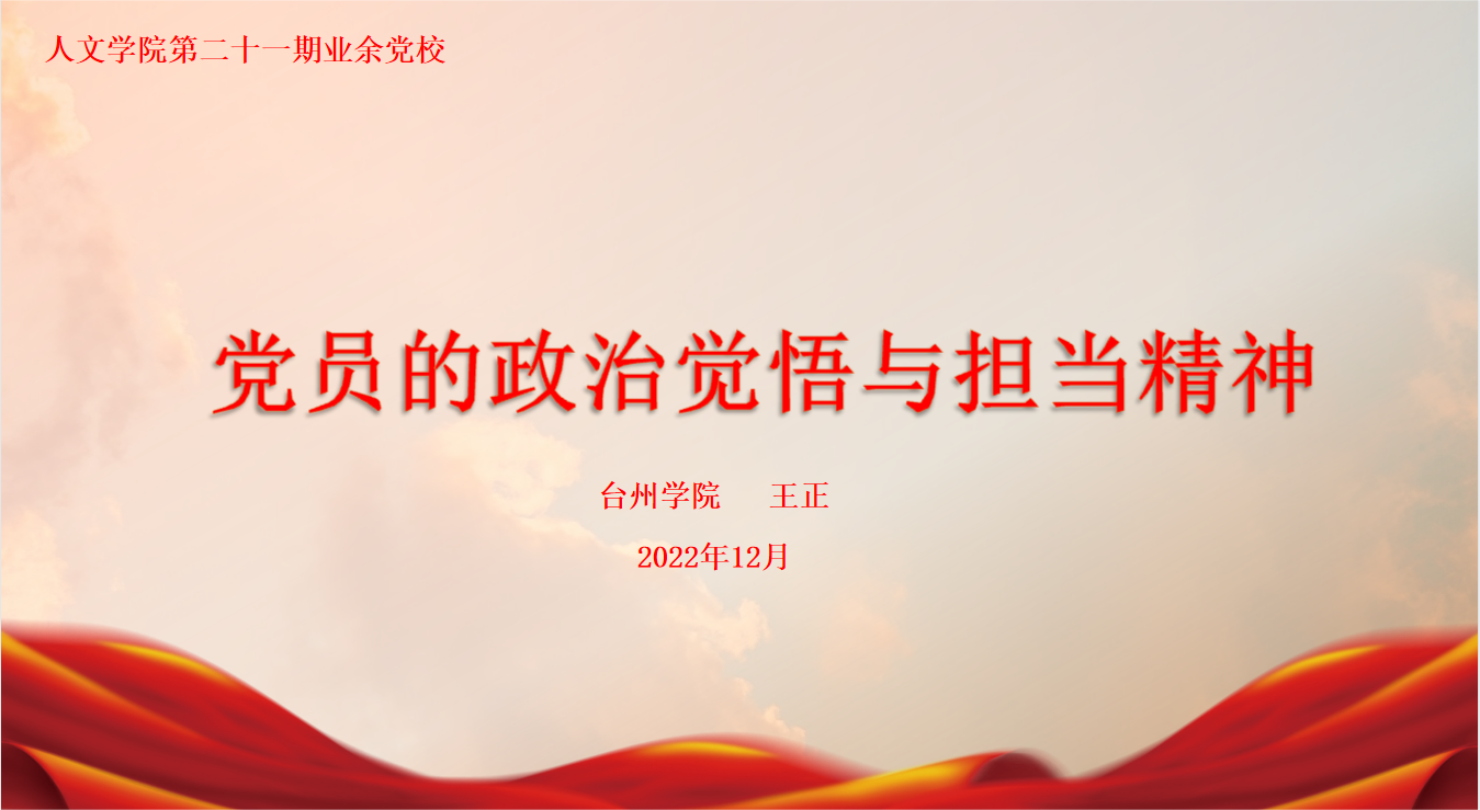 12月9日下午,校党委委员、副校长王正围绕“党员的政治觉悟和担当精神” 为人文学子上党课。党课由人文学院党委副书记林仙主持。