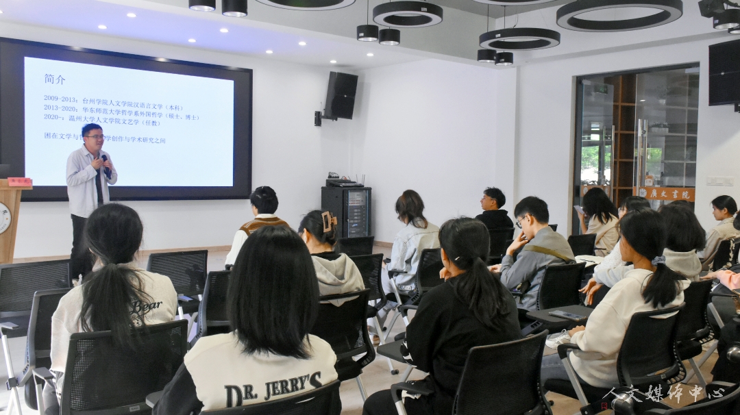 4月27日下午,由人文团学会实践就业部承办的第十三期“研途有你”活动于广文书院多功能厅举行。本次活动特邀汉语言文学专业13届毕业生、华东师范大学哲学系博士、温州大学人文学院黄家光老师作“在考研与写作之间来回折腾”主题讲座,人文学院辅导员赵远哲及人文学子参加活动。