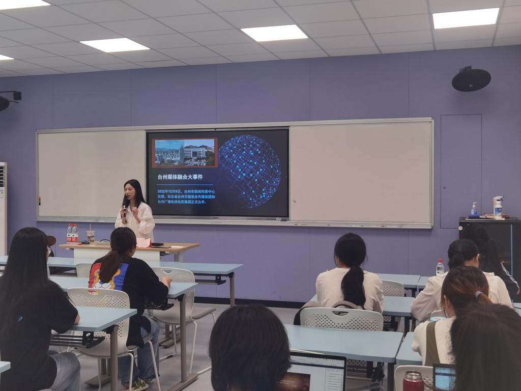 5月18日下午,人文学院团学会实践就业部承办的人文学院第二十四期“创客论坛”活动在1107教室成功举行。本次活动特邀2015届汉语言文学专业毕业生、现台州市新闻传媒中心主持人王潇莹作经验分享,人文学院2021级、2022级汉语言文学、网络与新媒体专业同学参加本次活动。
