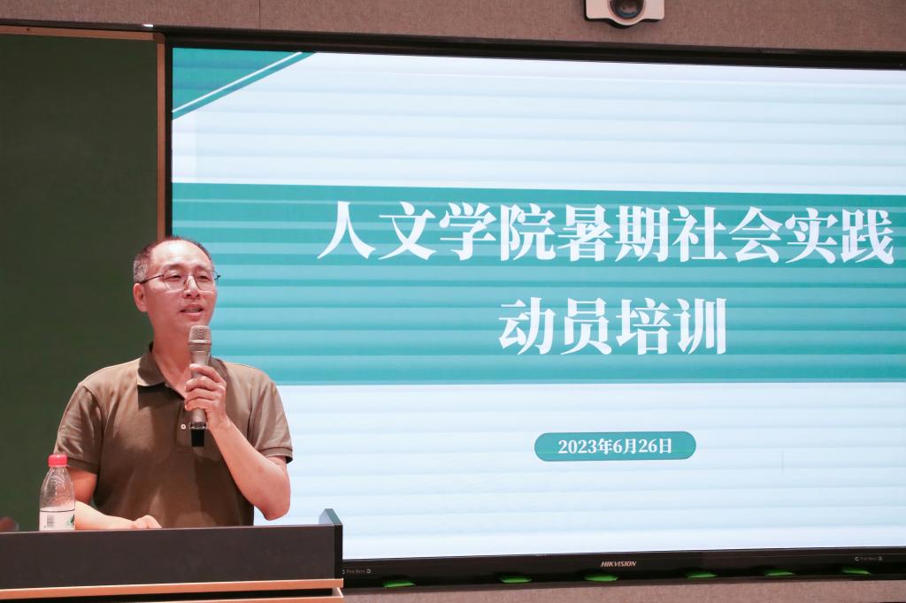 6月26日晚,人文学院暑期社会实践动员大会在A6教室召开,院党委副书记林军辉、分团委书记刘丽娟出席,在校暑期社会实践队全体队员参加。