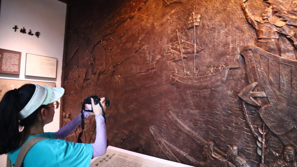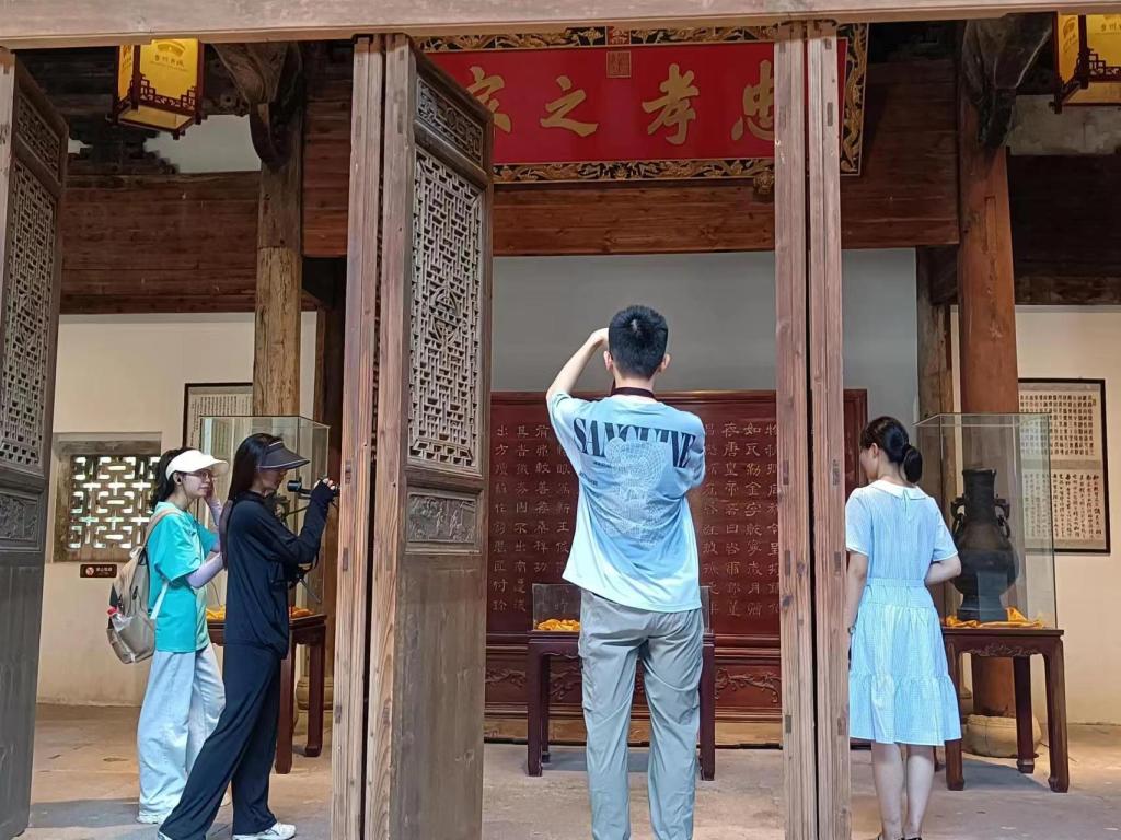 镜头转换,实践队队员们来到了戚公祠。走近入门牌匾与戚继光画像,队员们不禁庄重肃穆起来,认真观察拍摄,门后习近平总书记的语录“英雄是民族的脊梁,是激励我们前进的强大力量”也在阳光下熠熠生辉。继而摄制组左拐进入清风长廊、清风堂、止止堂、戚公祠主殿分别进行拍摄。在主讲人简要的讲解中,戚继光的光辉事迹更加深入人心,也让队员们对“爱国勤廉”精神有了更加深入的了解。