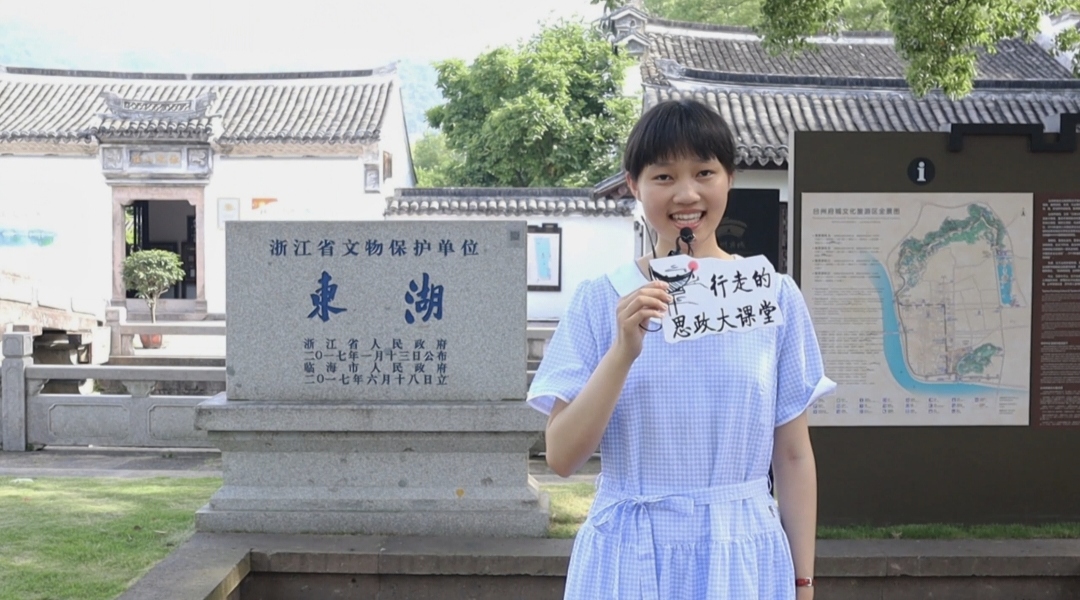 镜头聚焦的第一站是临海东湖。“杭州有西湖,台州有东湖。东湖之胜,小西湖也。”借用清代著名文人俞樾的诗句,实践队正式拉开了拍摄的帷幕。实践队按照荣兴堂、九曲桥、骆临海祠、碑林、杨哲商墓的顺序进行拍摄,兼收自然景物与人文风光。跟随着主讲人黄泺璋的脚步,钱氏家族的忠孝、骆临海的高洁、革命志士杨哲商的气概一一呈现在镜头面前,这些永垂不朽的精神深深影响和激励着队员们。