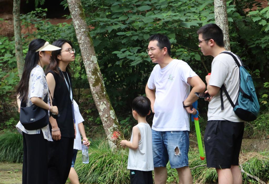 8月20日上午,团队抵达赤城山,对玉京洞、济公院、梁妃塔等众多文化景点进行考察。联系相关历史与文化背景,成员们发现赤城山与李白、济公等名人联系密切,其文化底蕴深厚,值得深入挖掘。对此团队进一步思考,应当如何结合当地历史文化和旅游资源,将故事和诗词元素融入景区的建设和宣传中,丰富游客的文化体验,打造一个诗意盎然的赤城山。
